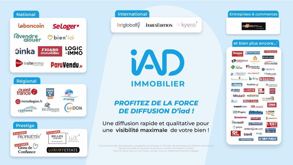 Activez en un clic la diffusion sur les portails immobiliers nationaux, régionaux et internationaux du marché, ainsi que sur le site iadfrance.fr qui cumule plus de 1,5M de visites par mois.